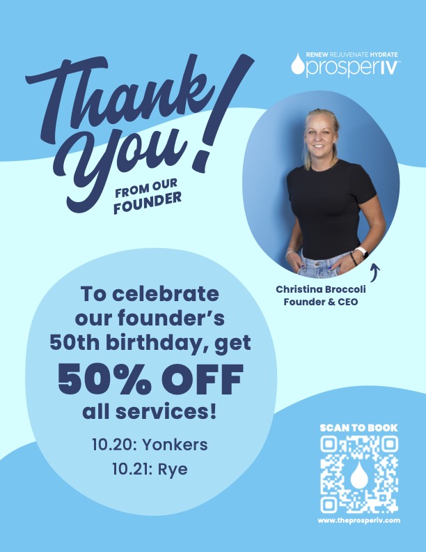 The Prosper Way is our philosophy on taking excellent care of you. We believe that you’re important, so we focus on treating you that way. You will be educated on why the drip chosen for you is the best vitamin IV for your needs. You will be given your choice of room, depending on the location. You will be seated comfortably so that you can fully relax. We will provide refreshments for you. All you have to do is just sit back, take some time for yourself, and allow your body to receive what it needs. At prosperIV, we completely take care of you.